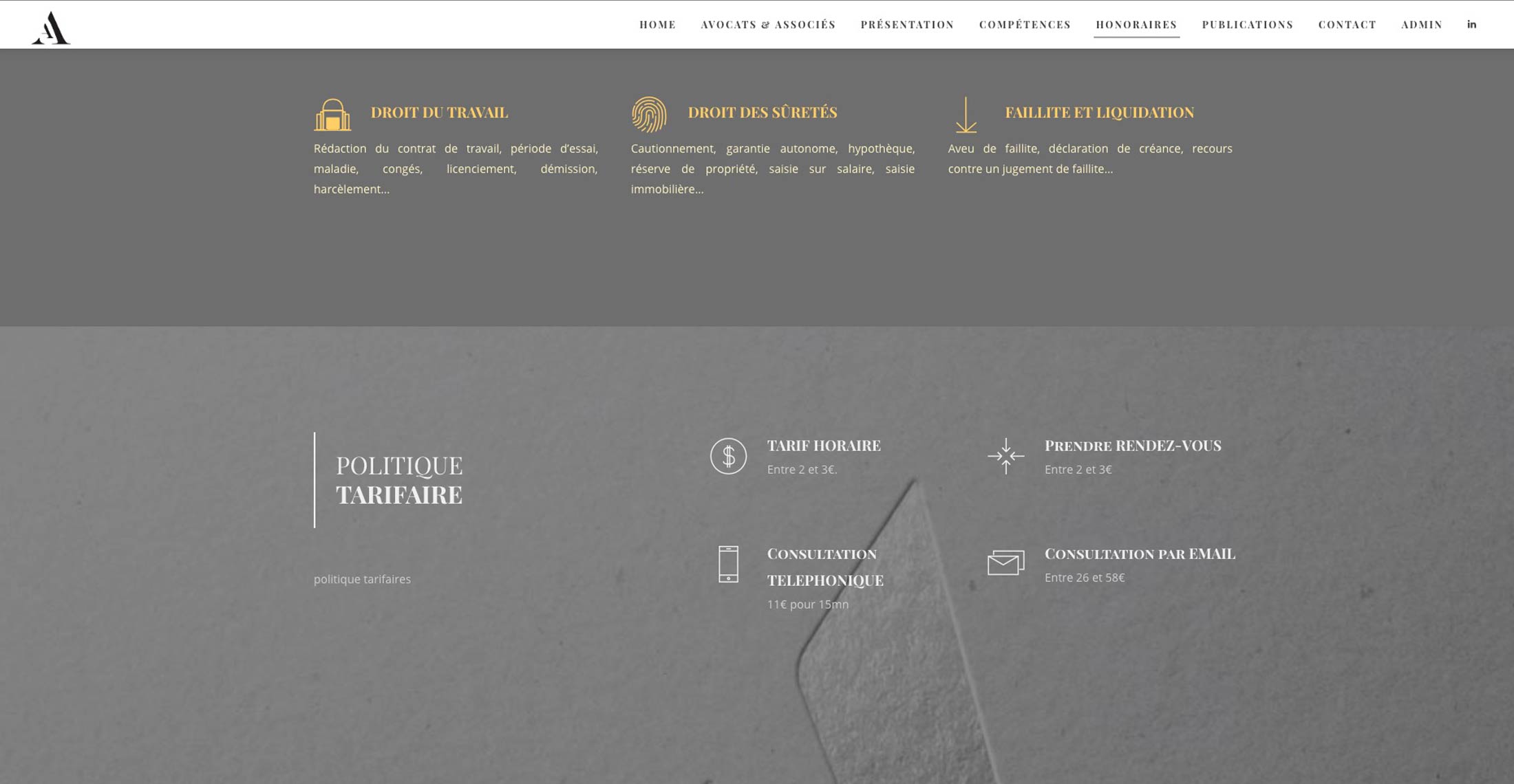 Nous vous proposons un véritable outil conçu entièrement pour répondre à l’ensemble des besoins de l’activité juridique. Répondant à toutes les contraintes d’ergonomie du web, avec un design épuré, ce site est le reflet de votre professionnalisme et de votre expertise. Nous créons avec votre collaboration votre site comprenant l’ensemble de vos informations professionnelles que vous pouvez ensuite faire évoluer vous-même avec une interface d’administration ergonomique et entièrement sécurisé